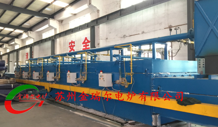 天然氣不銹鋼管連續(xù)固溶爐為輥底式連續(xù)熱處理,其主要結(jié)構(gòu)包括進料架、加熱爐、噴水冷卻系統(tǒng)和出料架。